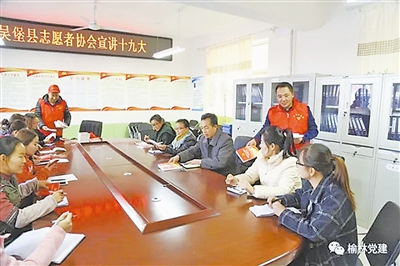 吴堡县爱心志愿者协会党支部到岔上镇中心小学宣讲十九大精神(资料图片)。